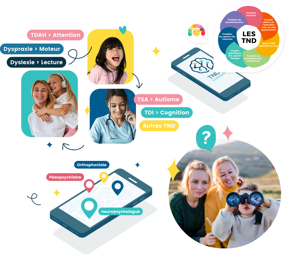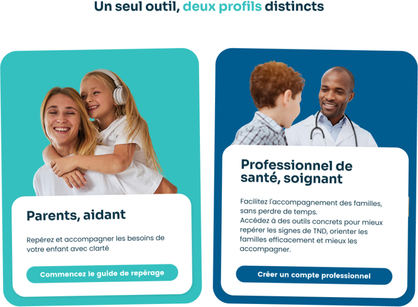 - D’un côté : les parents et aidants. Anxieux, souvent isolés, en quête d’orientation rapide. Leur enjeu : trouver le bon professionnel, comprendre ce qui se passe, ne pas perdre encore du temps.
